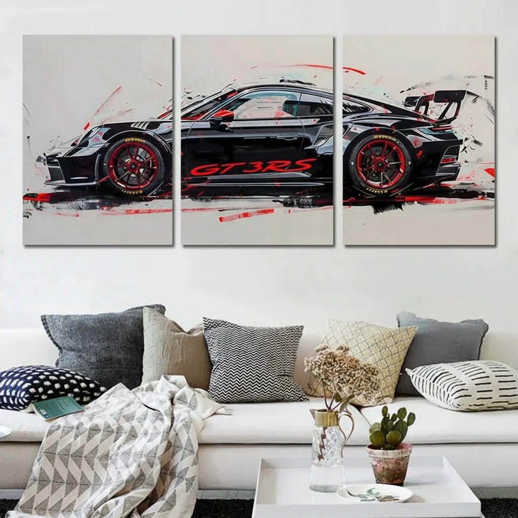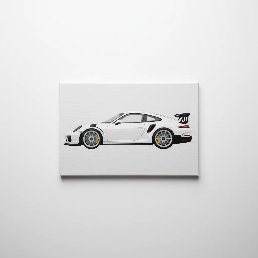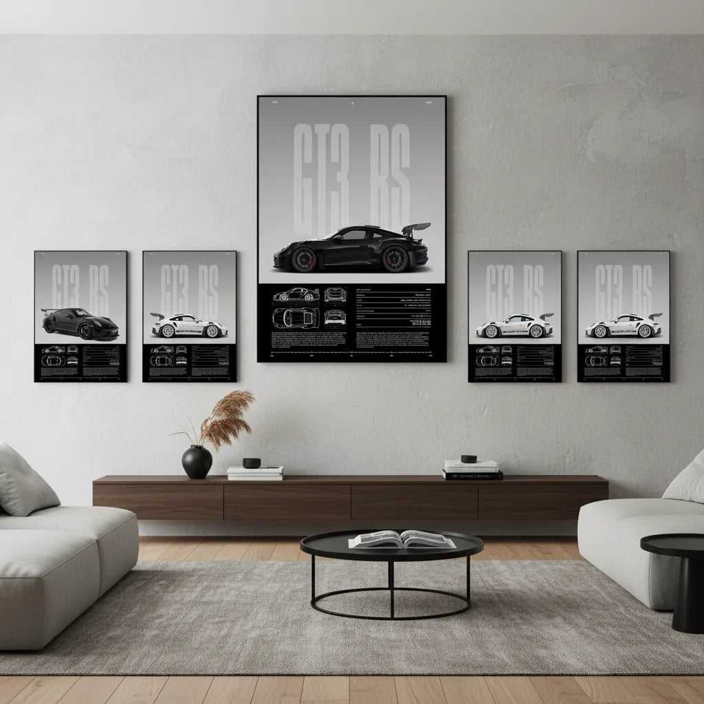 Dessa konstverk är inspirerade av den ikoniska GT3-RS och skapade med passion för bildesign. De är designade för att hylla bilens estetik och är inte officiella licensprodukter. Unik konst för entusiaster.