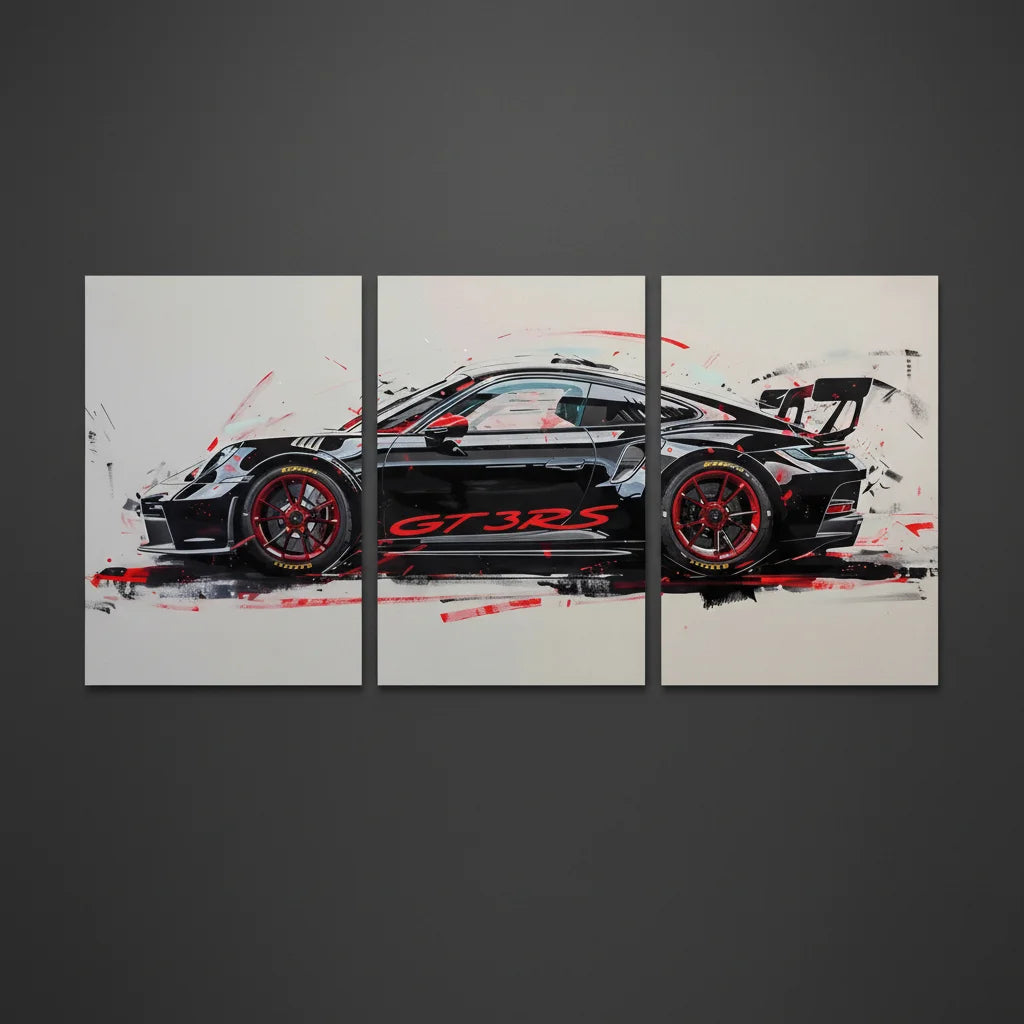 Ignitera ditt utrymme med en mästerlig hyllning till hastighet och precision. Varje panel fångar bilens dynamiska själ, en visuell symfoni som pulserar med rå kraft. OBS ram ingår ej.